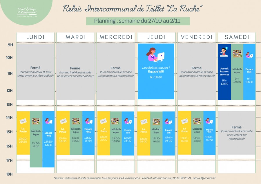 Le planning du Relais Intercommunal de Teillet pour la semaine du 27 octobre au 2 novembre 2025 est disponible.