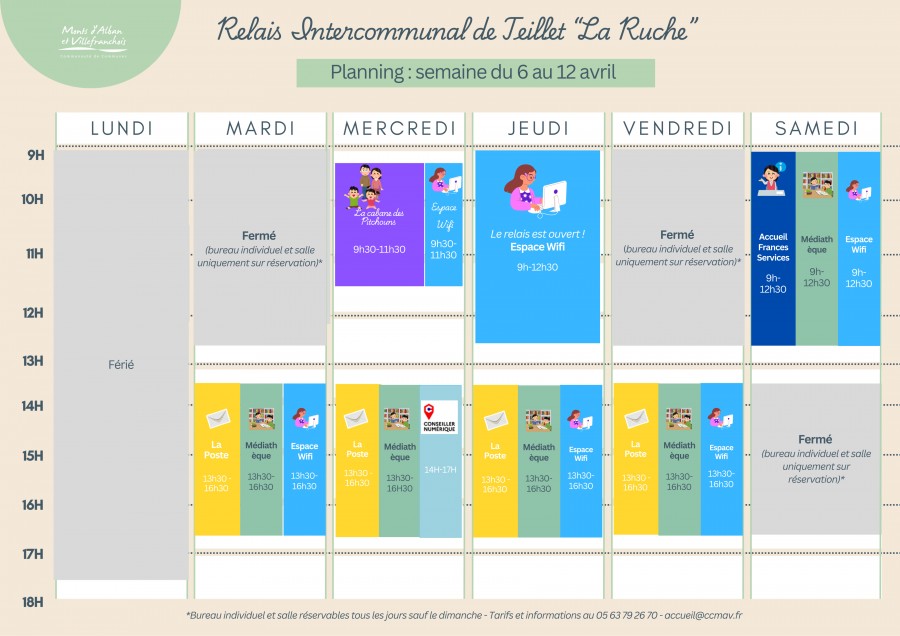 Le planning du Relais Intercommunal de Teillet pour la semaine du 6 au 11 avril 2026 est disponible.