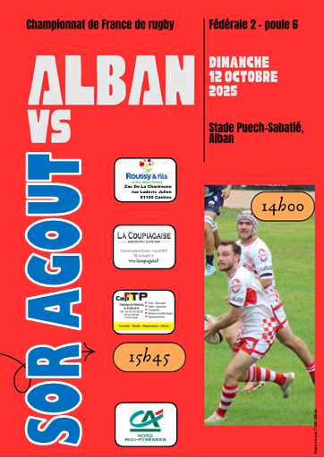 Match USC Alban-Sor Agout. Championnat de france - Fédérale 2 - Poule 6
