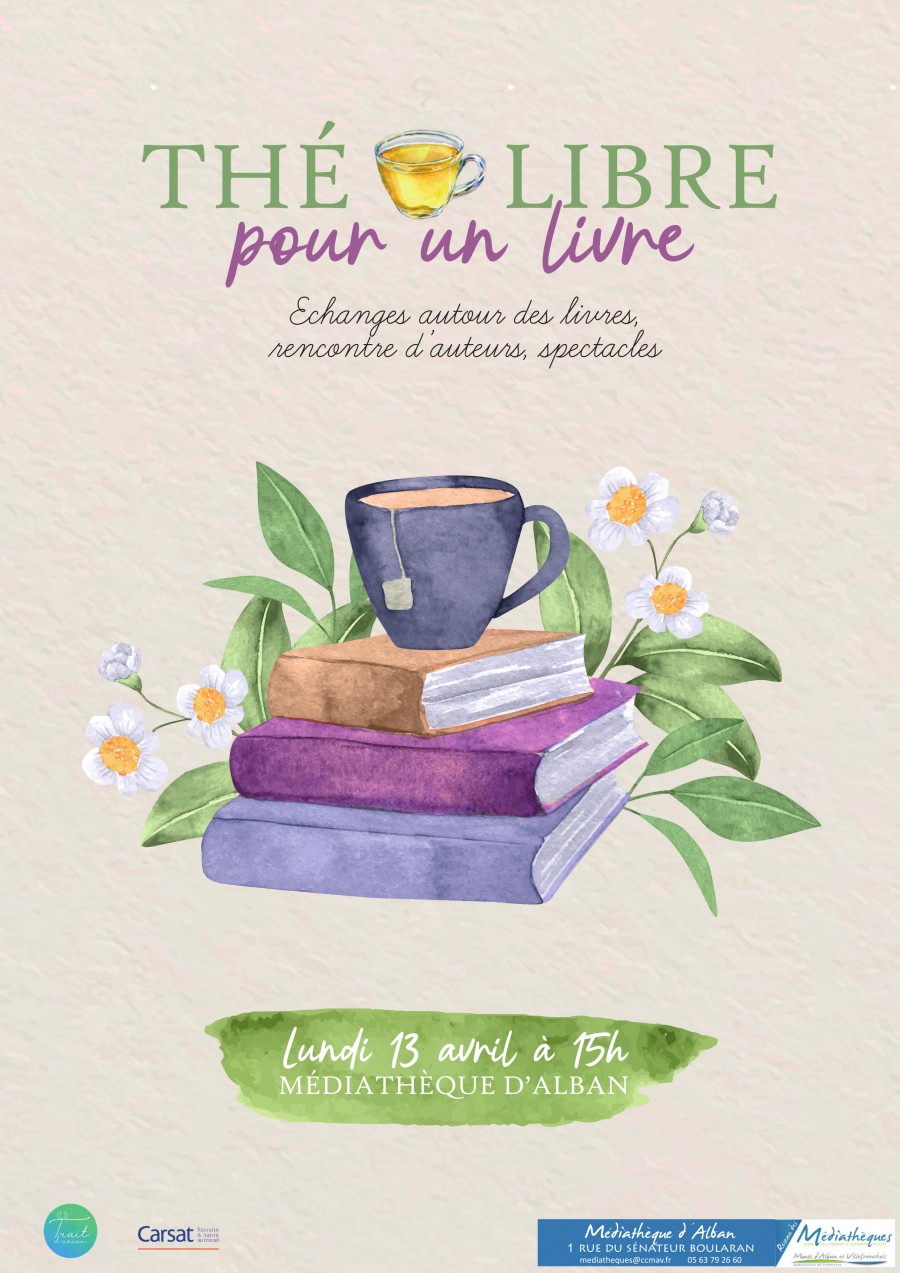 Rendez-vous le 13 avril prochain de 15h à 17h pour participer à votre rendez-vous mensuel à la médiathèque d’Alban : Thé libre pour un livre !